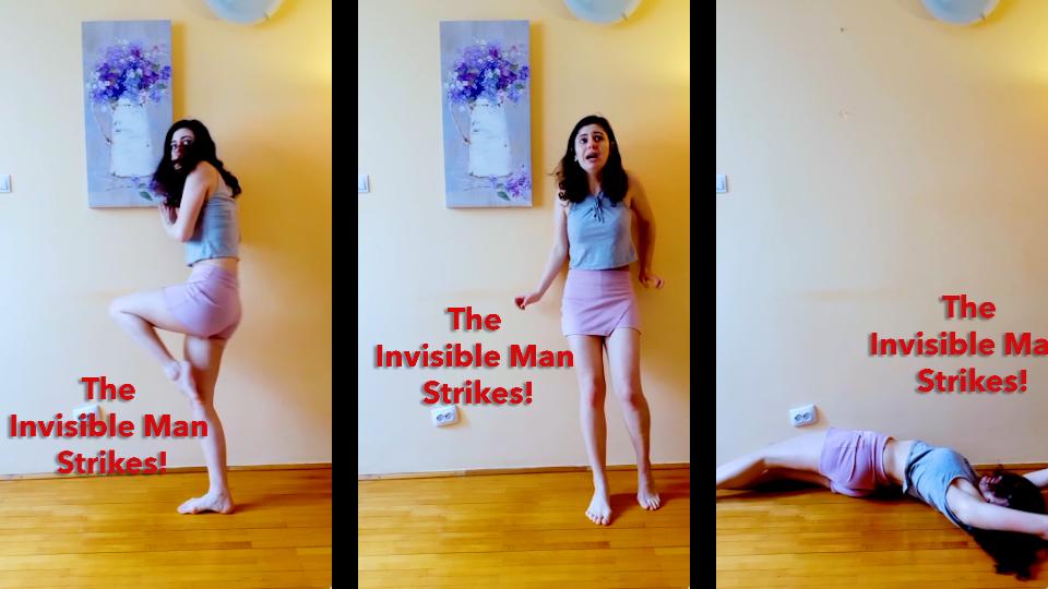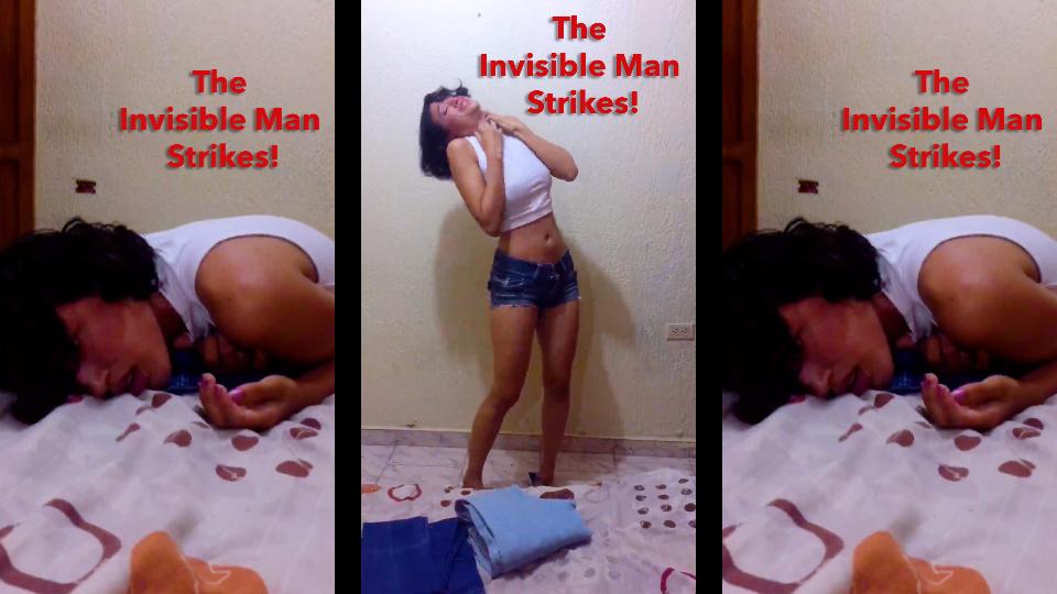 121: Monica is being tormented by the Invisible Strangler scaring her in her own home. The girl is on the lookout for the Invisible Strangler when he makes his move, sucker punch in the stomach and manhandling her against the wall. Monica twists and turns, crying out in fear as she is assaulted! She grabs a painting from the wall as a weapon, swinging it desperately in an attempt to fend off the Strangler! She can’t seem to hit him, and soon she is brought to the ground with a yelp! Twisting on the ground, her body clenching as the strangler wraps his hand around her neck and squeezes tight. Her bare legs kick in the air as she gasps and gags, pressure building. She attempts to get up and escape the crushing force. Screaming out in frustration. But it is no use… Monica dies on the floor with her mouth agape!