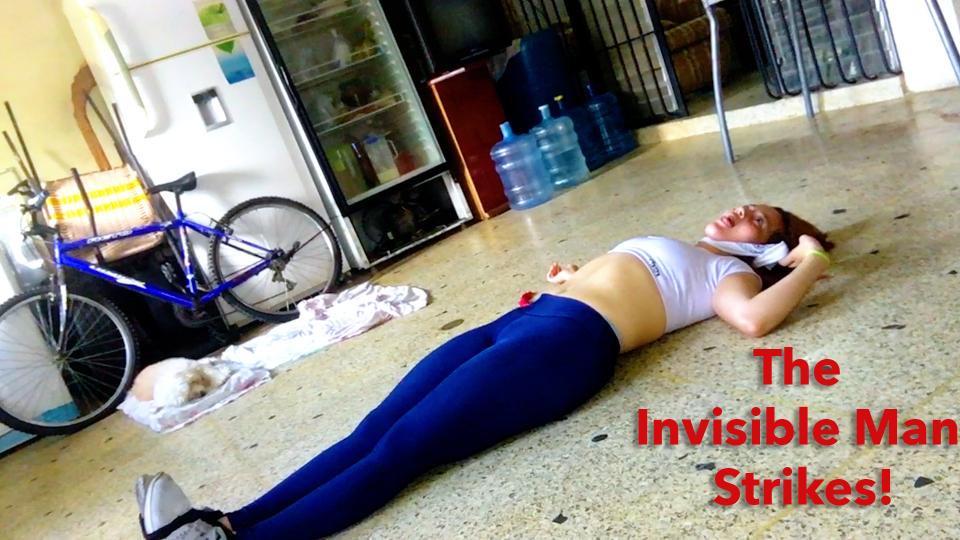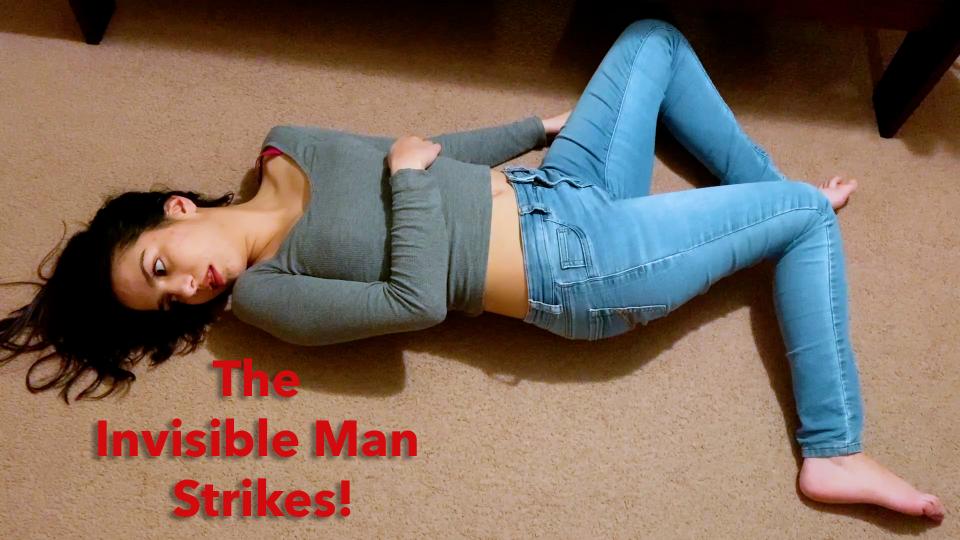 141: Laura was working out at home when she was kidnapped and bound by the Invisible Strangler! Her hands tied behind her back and a cleave gag wrapped around her mouth with her own garment. The frightened wiggles on the ground, kicking and flailing her legs while reacting to the Invisible touch exploring her body on the floor. She cries and moans under the gag while the Invisible Strangler has some fun. Released from her bonds, Laura doesn’t have a moment to collect herself before the Strangler wraps his hands tight around her throat and chokes her out on the floor! The athletic girl puts up a good fight, flailing her limbs and moving her body wildly while the strangler crushes her throat. Veins bulging on her toned neck, tongue sticking out, face growing red from the unrelenting pressure. Soon it overwhelms and Laura dies on the floor, body limp and face frozen in pained terror