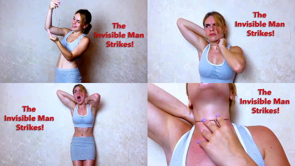 Sasha receives a new necklace from a mysterious benefactor. She is enamored in its beauty and doesn’t care where it came from so long as it belongs to her. As Sasha admires the necklace, it suddenly grows tighter around her throat. The Invisible Strangler yanks the necklace tight and Sasha is choked by her jewelry! She gasps and whimpers, the pressure of the tight ligature causing her face to grow red quickly. Sasha struggles with the necklace, fighting against the force as she wiggles in place, held up against the wall as her life is ended. Eyebrows knit in pain, face flush from the pressure, Sasha is strangled relentlessly. Unable to catch a breath her eyes go wide in terror and then she slides down limply against the wall. Dead on the ground with here eyes open, the Strangler admires his handiwork and looks close at her beautiful corpse and the markings of the killer necklace.