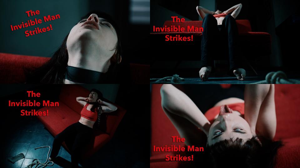 Bianca finds herself in a terrifying predicament, tied up, kidnapped by the Invisible Strangler! Bianca’s hands are tied behind her back as she huddles in fear on the couch, struggling to speak through the fear and a cloth stuffed in her mouth. Bianca’s feet are bound, ensuring the frightened victim won’t be going anywhere. A thick cloth is stuffed in her mouth, a belt wrapped around her neck. The rope runs along her thighs as she lays back and squirms. Desperately working against the knots. Finally her hands work their way free of the rope, then she sets to work untying the knot around her bare ankles. Finally she frees herself from the gag and relishes her moment of freedom. But it is short lived! The Invisible Strangler pulls tight on the belt around Bianca’s throat and strangles her ruthlessly on the couch. The victim coughs and squirms, the belt wrapped tight around her throat. Bare feet kicking as she struggles. Eyes crossing, tongue sticking out, drool spilling from her lips. Whining and crying as her life is brutally ended. Arms fighting against the pressure, but it is no use. Bianca’s life is brought to a violent end and her limp body falls forcefully onto the couch. Her dead eyes stare off into the distance, drool still wet on her chin… She is no more.