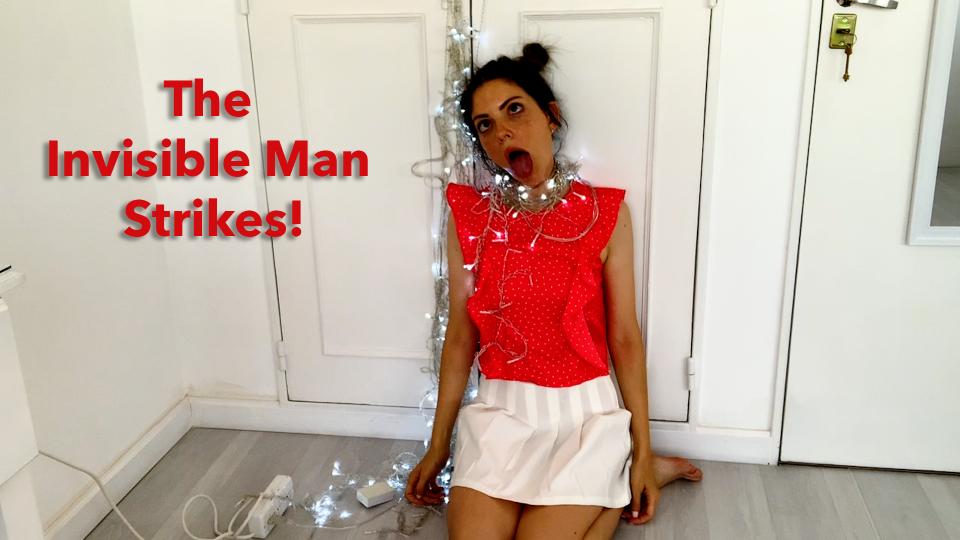 Tina receives a mysterious present in the mail from a secret admirer! She opens the gift in anticipation and discovers it is a beautiful string of Xmas light! Tina is excited at the gift and plugs it into the outlet nearby. Tina looks closely at the bright shining lights with a smile. Little does she know, but her secret admirer is the Invisible Strangler and he takes this opportunity to attack! Tina’s hands are forced to wrap the Xmas lights around her neck and pull it tightly. Tina is pushed roughly against the wall as she is strangled with the lights! Her eyes roll back and go wide in terror while the choking pressure forces her tongue to stick out while the ligature is wrapped around her neck. Tina pulls and prods at the string but it is forced tight crushing her throat by the Invisible Strangler. Drool comes out of Tina’s mouth as she gasps in terror and kicks her legs out. Soon she is forced down onto her knees where she is strangled for a time. Her expression goes big as she strangles in place, forced to submit in agony. Then Tina falls face first down onto the floor while the strangler chokes her relentlessly and her tongue sticks out as far as it can go. Then Tina’s mind goes dark and she flops limply on the ground. Tina is posed with the lights tied up to the door handle and still tight around her neck. As soon as she regains consciousness the Invisible Strangler chokes her hard with the lights. Tina grasps desperately at the light switch in an attempt to get free, but it is no use. She is strangled there against the door with no hope of escape. She gasps and sticks her tongue out from the pressure while her eyes roll back in misery. The torture ends soon and she goes limp with her head hanging up against the Xmas lights.