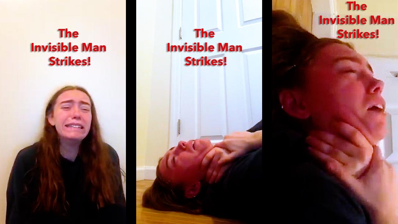 Janie sits in a chair terrified as she has been captured by the Invisible Strangler, begging for her life as she cries from the overwhelming fear. Begging her captor to let her go, leave her alive, and stop hurting her delicate body. The tears flow free as the girls fear is palpable. When the Invisible Strangler has had enough listening to her frightened whine, he brings her down on the floor and wraps her own hand hard around her throat. Janie fights off the attacking hand but it is latched on firmly. She shakes and squirms on the floor, gasping for air as her face grows more flush and red from the choking pressure. Janie struggles on the ground but the Strangler has her fully in his clutches. She never stood a chance, and soon she goes limp on the ground with her mouth partway open and eyes frozen in a death stare.