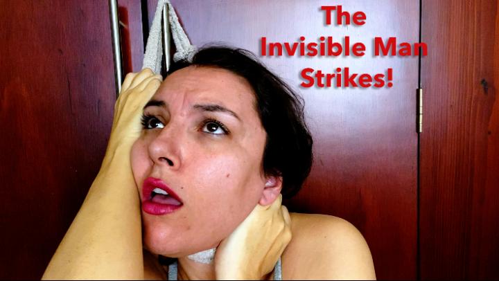 Maria has set up her smartphone on a stand to capture her online dance. She smiles into the camera and then shakes her hips in time with the tune. As she dances in cute style, a dark presence looms over her… Maria stops her dance while still recording to check out the area in confusion. She is suddenly jabbed across the face hard by an Invisible punch. She is struck again and again across her face before the Invisible Strangler grabs her by the neck and pushes her hard against the wall. Maria struggles against the wall while her hair is pulled and her pressure is exerted on her slender neck. After a struggle here Maria crumples to the ground. Her bare feet kick out on the floor as she struggles against the Invisible Strangler, gasping for air in desperation. Her feet clench and flex as the pressure builds. The Strangler wraps a garment as a ligature around Maria’s throat, balanced against the closet door. Maria’s face goes bright red as she struggles against the ligature strangling all the while. She spasms and kicks her feet out in attempt to get free, grasping at the ligature tight around her neck. But it is no use. After a prolonged struggle Maria passes away from the choking pressure, limp with her feet sticking out and her eyes open, neck squeezed tight in the killing ligature.