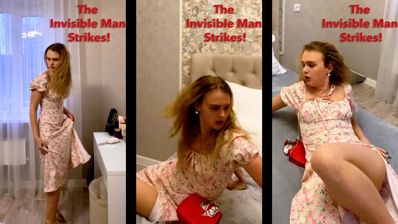 Aleksandra brushes her hair in the mirror as she gets ready for a night out. She picks up her purse and regards herself in the mirror. Then she senses a strange presence as the Invisible Strangler is watching her close… He pushes the girl around and she reacts in confusion, unsure of what is happening as the Invisible Strangler makes his first pass. Aleksandra is manhandled around the room and falls into the corner as the fear of the situation gradually dawns on her. She rushes across the room and tries to keep the Invisible attacker out of her room but he pushes through the door and tosses the helpless girl onto her bed. Aleksandra flails on the bed, kicking up her legs and shaking her arms as she is pinned down on the bed. The purse chain makes its way around her neck and she chokes and struggles while flopping on the bed. She is pushed roughly back in place as she tries to escape and further punished by her purse strap. Aleksandra is dragged into the corner of the room and pushed up against the wall, her purse held tight around her neck and constricting her airflow. The terrified woman trembles in fear as she is strangled by her own purse. She gasps for air and pulls against the attacking force. But it is no use… Aleksandra won’t be making it for her planned night out as she is now limp and dead on her floor.