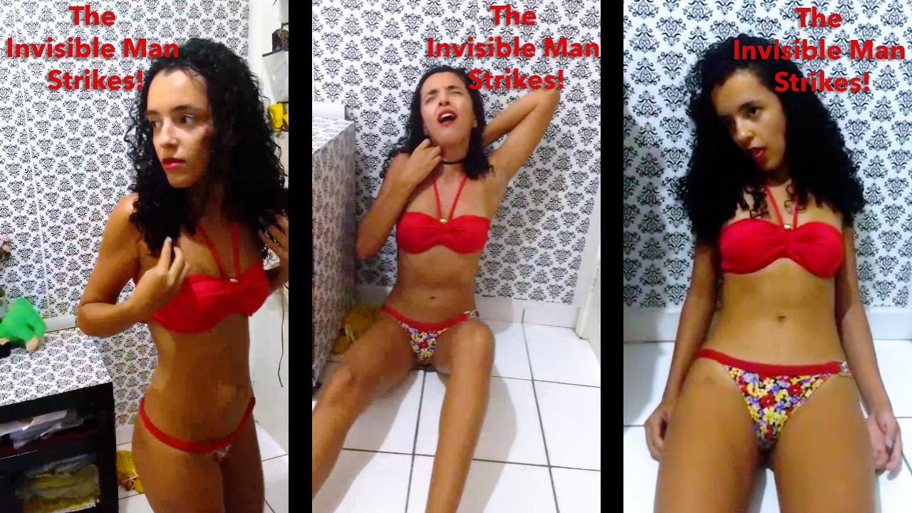 Bianca goes into her bedroom wearing a flashy red bikini and tries to decide what to wear to go out. As she is trying on a skirt, an Invisible force causes her to stop. As she is checking herself out in the mirror Bianca is grabbed suddenly and she looks around in confused fear. The Invisible Strangler throws her down onto her bed and begins to choke her while she kicks up her legs trying to get free. She stands up from the bed and tries to get away but then she is thrown back down. After struggling here Bianca manages to hop up and get to the other side of the room. She fights at the door handle trying to get out when the Invisible Strangler pins her against the wall and chokes her viciously. Bianca gasps in pain as she tries to get some air. Swatting around her trying to hit this Invisible attacker. She grabs hold of her purse as she tries again to escape through the door, but the Invisible Strangler stops her once more. Pinning her against the wall and holding on to the purse straps squeezing tight around her neck. Bianca is pushed against the wall as she is choked ruthlessly with the purse strap. She sinks to the ground and shakes her legs while the purse chokes her out. After a struggle Bianca goes limp and dies against the wall.