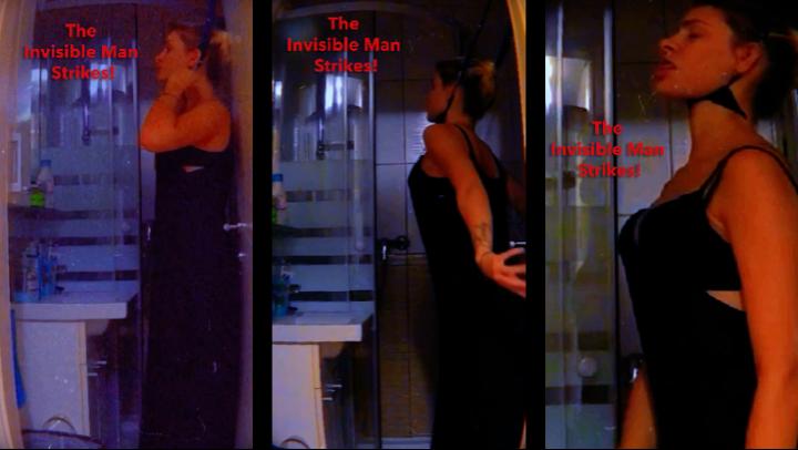 Piper enters her bathroom with her mind under the control of the Invisible Strangler and ties off a stocking to the top of the shower rod, looping it around into a noose around her throat. Piper drops her weight and hangs against the noose, strangling in the air. She writhes in pain, face twisting in agony as she clutches at the ligature crushing her throat. Piper’s air dance continues as she shakes back and forth, hands clenching with all their might as she sways in the air dangling. She fights at the noose fastened for herself as her arms twist and tremble. With all her weight on her neck Piper does not have long left to live. She gasps and gags trying to catch air as it gurgles in her throat. Piper’s arms fall limply to her side as she suddenly fades away into darkness, her body twisting back and forth in the air dangling, dead with her tongue sticking out.